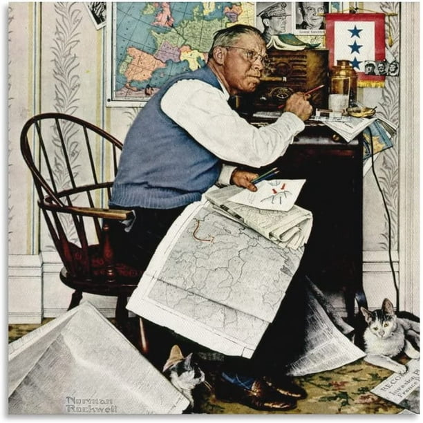 35 Norman Rockwell Wall Art Illustration Armchair General Man Charting War Maneuvers 1944 By Norman Rockwell Retro Canvas Art Poster And Wall Art Picture Print Modern Family Bedroom Decor Posters Walmart Com